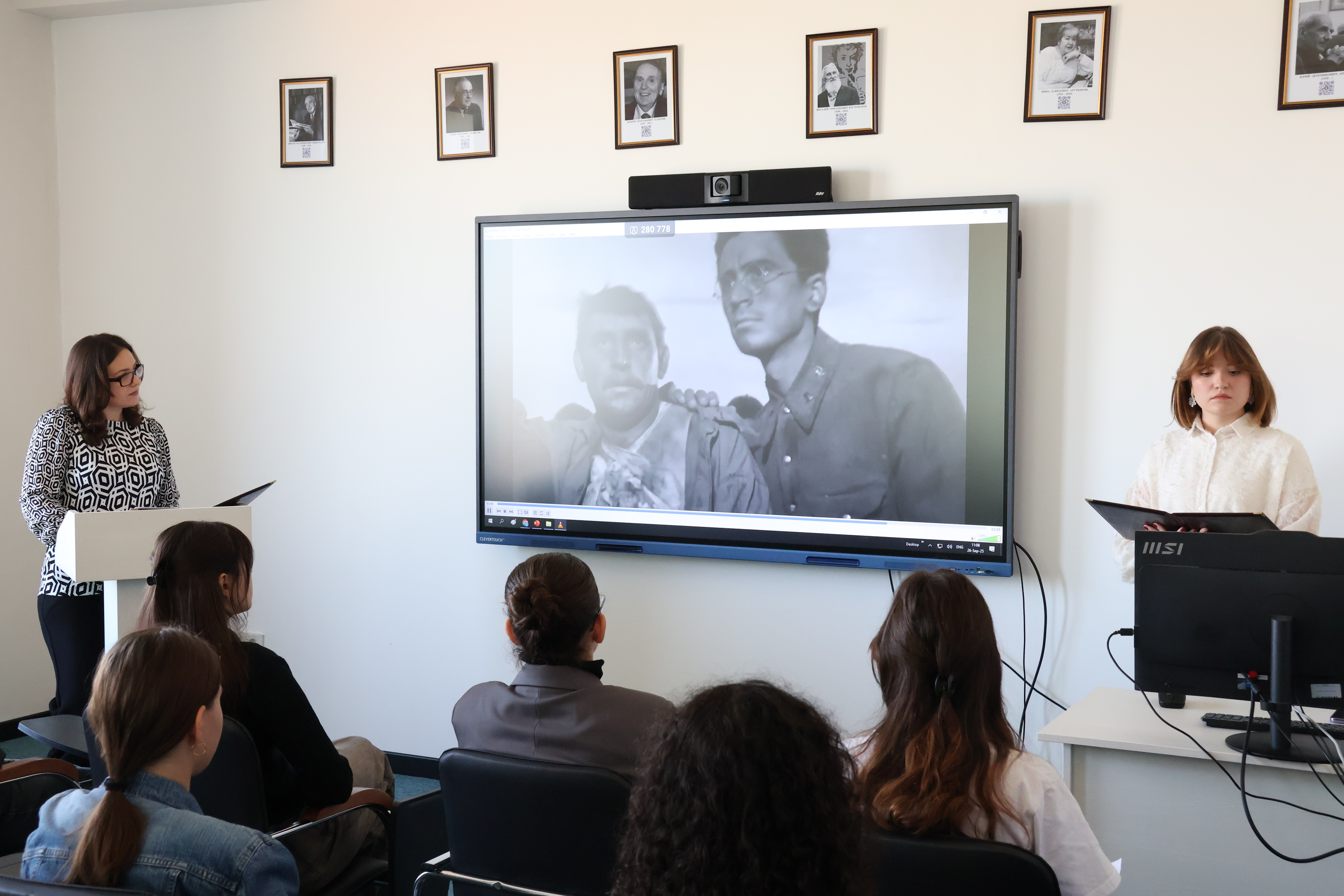 Кинолекторий прошел в очно-дистанционном формате, объединив студентов 1 курса РАУ по направлению «Лингвистика», а также преподавателей и гостей из РУДН, чтобы вместе прикоснуться к истории через слово и искусство.