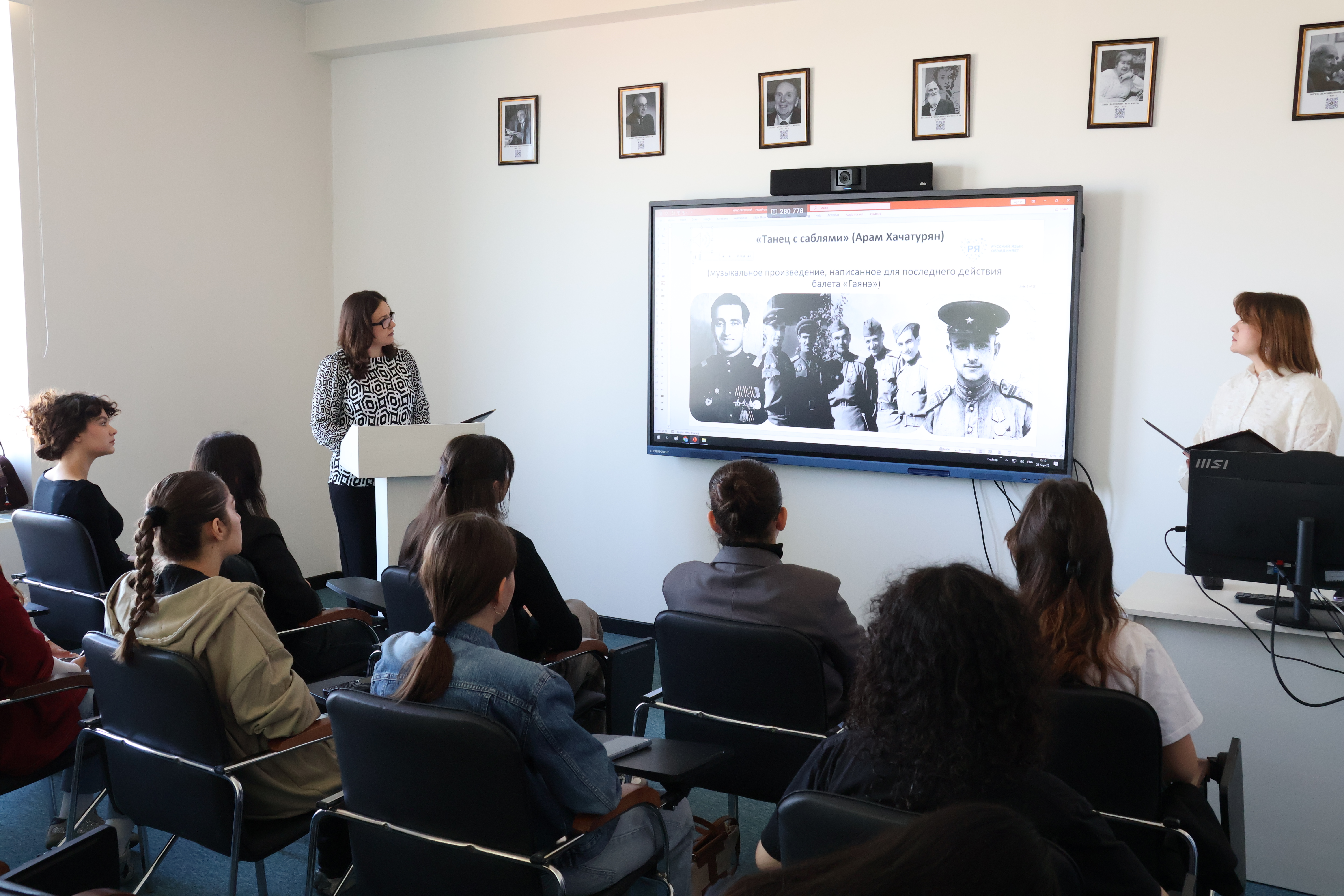 Отдельное внимание было уделено музыке, которая стала мостом между прошлым и настоящим. Прозвучали произведения, вдохновлявшие солдат и вселявшие надежду в тылу. Символично прозвучал «Танец с саблями» Арама Хачатуряна, а также строки, напоминающие, что слово и песня во время войны порой были сильнее оружия.