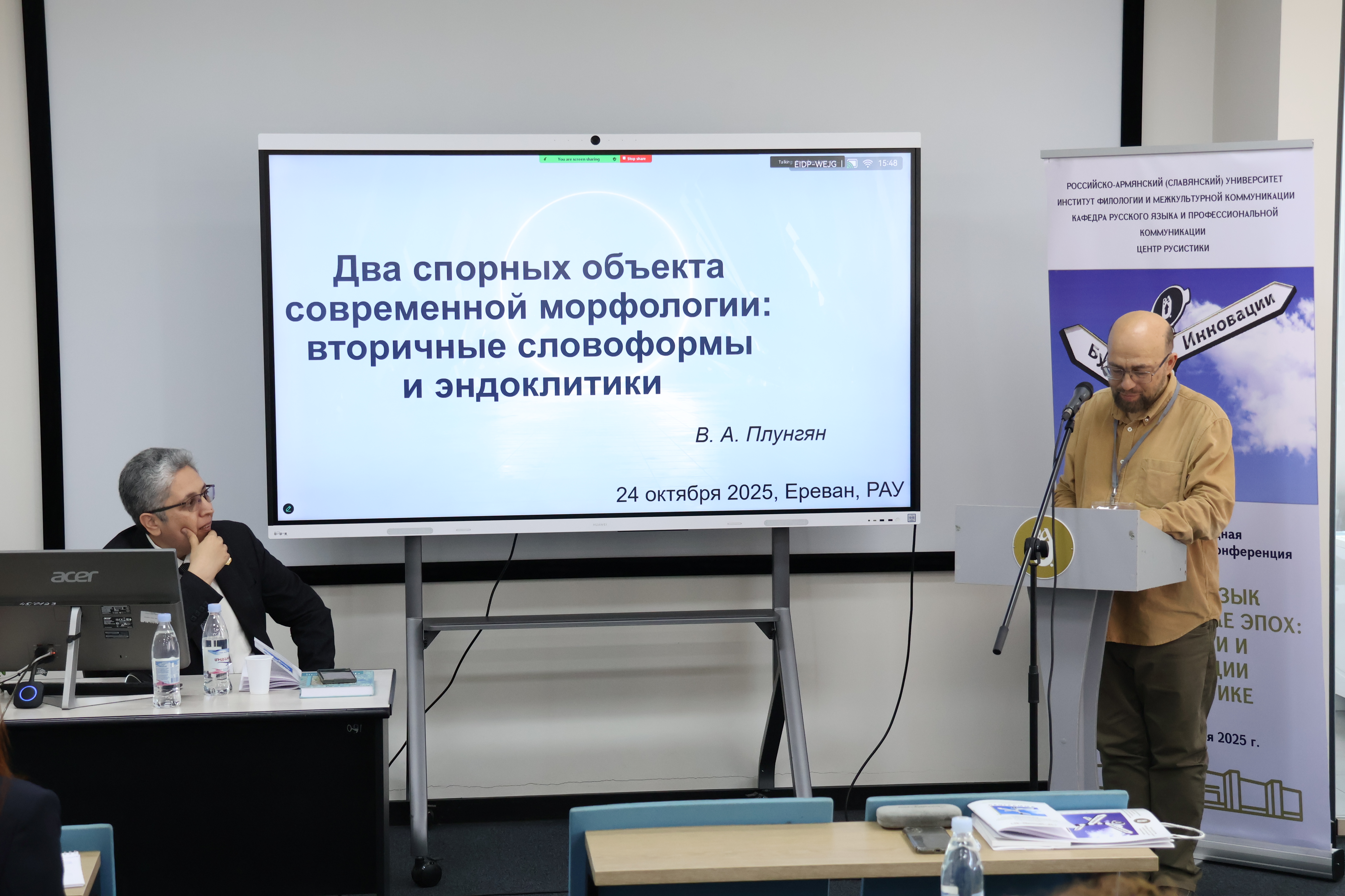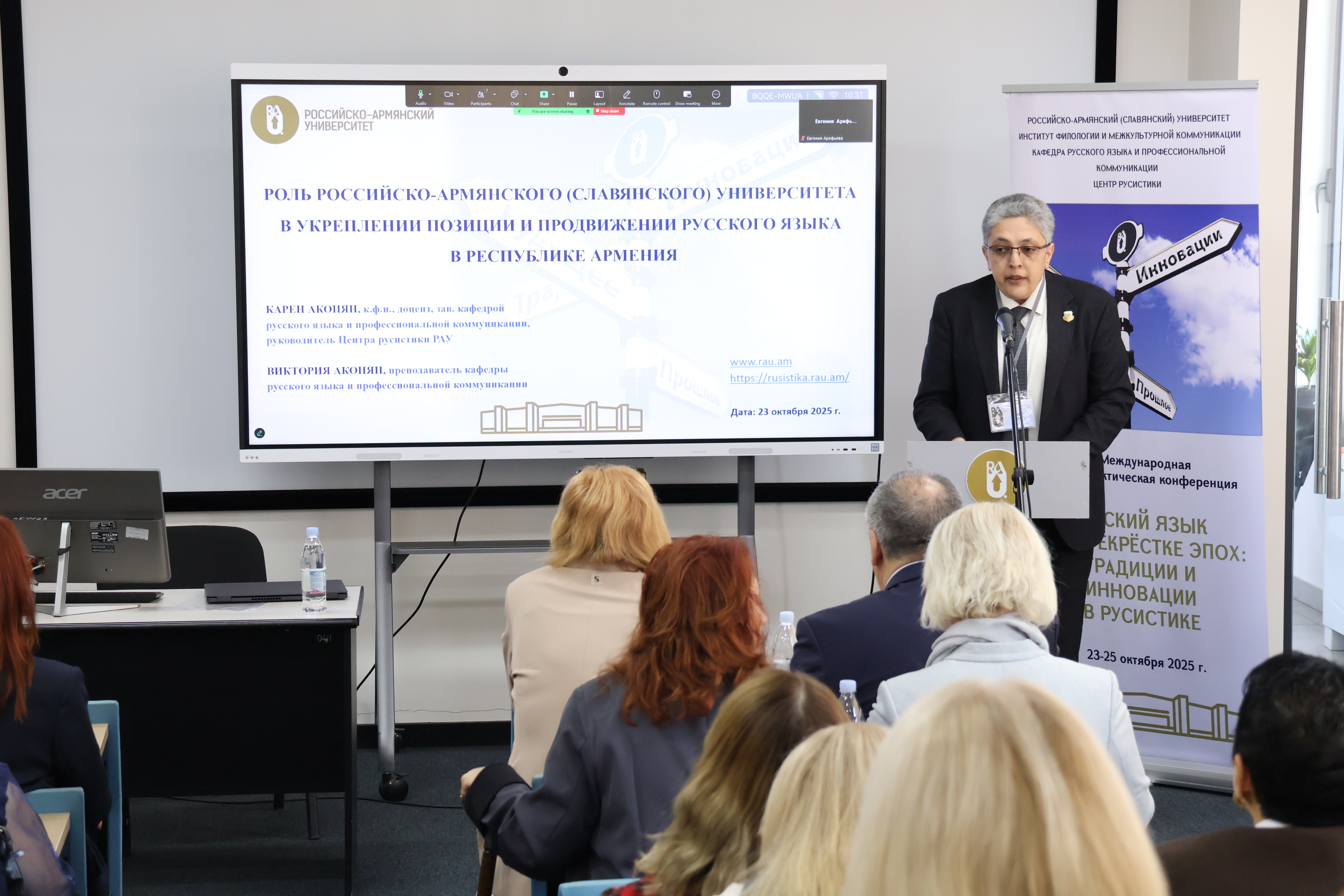 23–25 октября 2025 года в Российско-Армянском университете прошла VII Международная научно-практическая конференция «Русский язык на перекрёстке эпох: традиции и инновации в русистике». Организаторами конференции выступили кафедра русского языка и профессиональной коммуникации Института филологии и межкультурной коммуникации и Центр русистики РАУ.