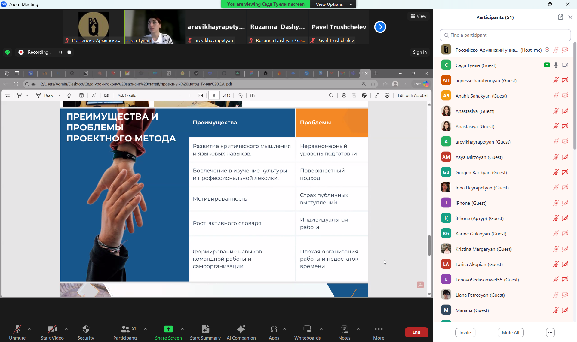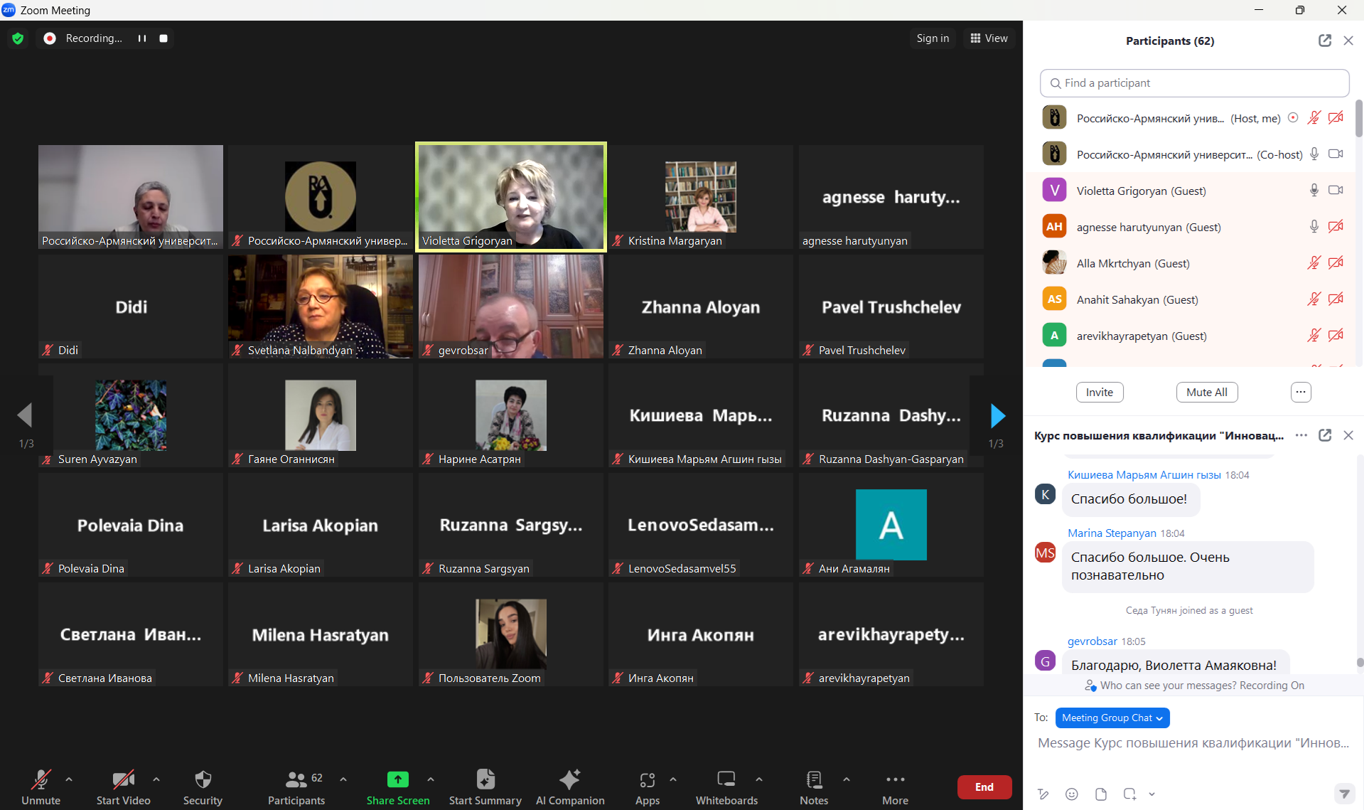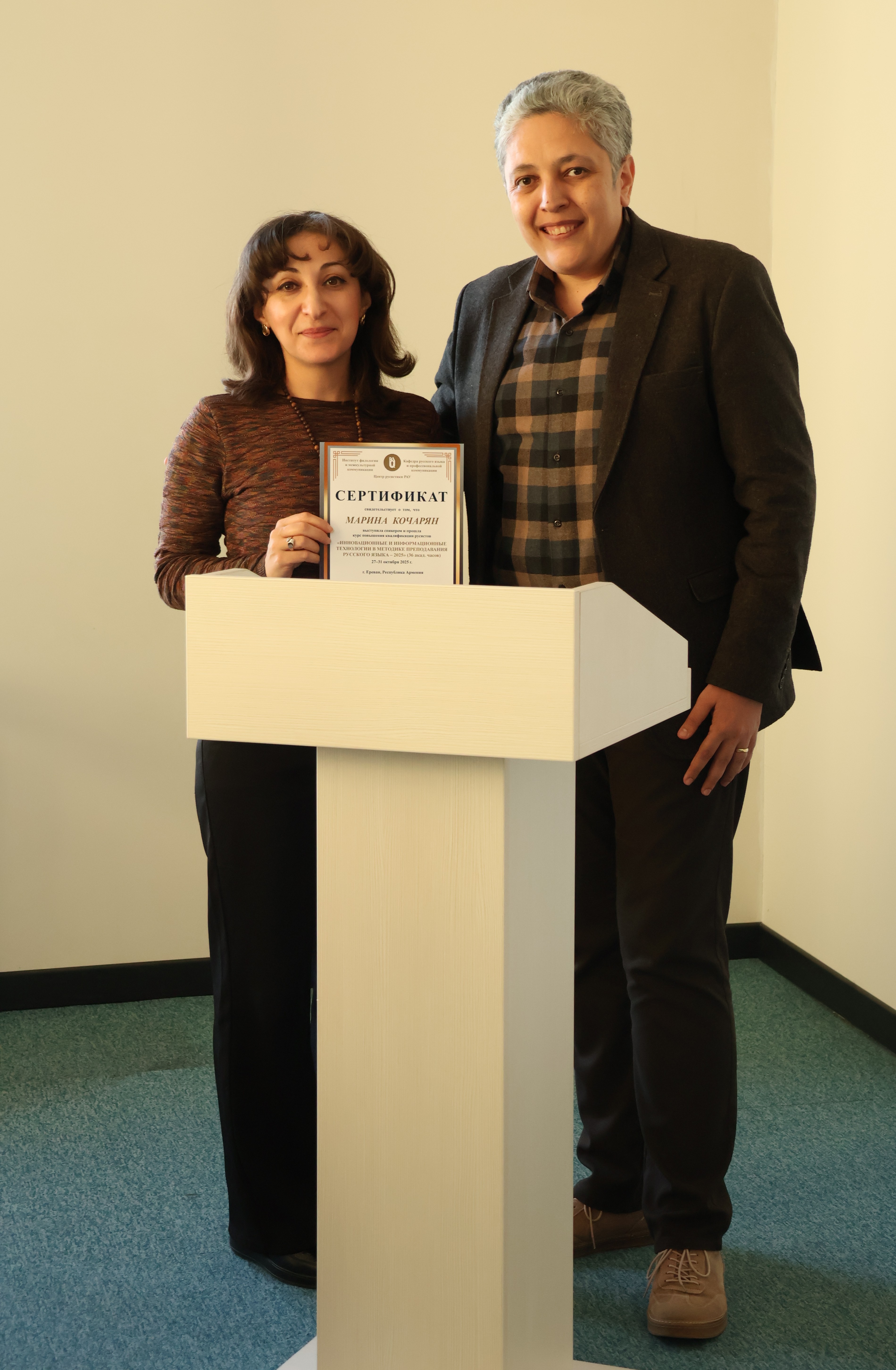 Курс повышения квалификации «Инновационные и информационные технологии в методике преподавания русского языка – 2025» был проведен в очном и очно-дистанционном форматах. Все участники КПК получили сертификаты образца Российско-Армянского (Славянского) университета.