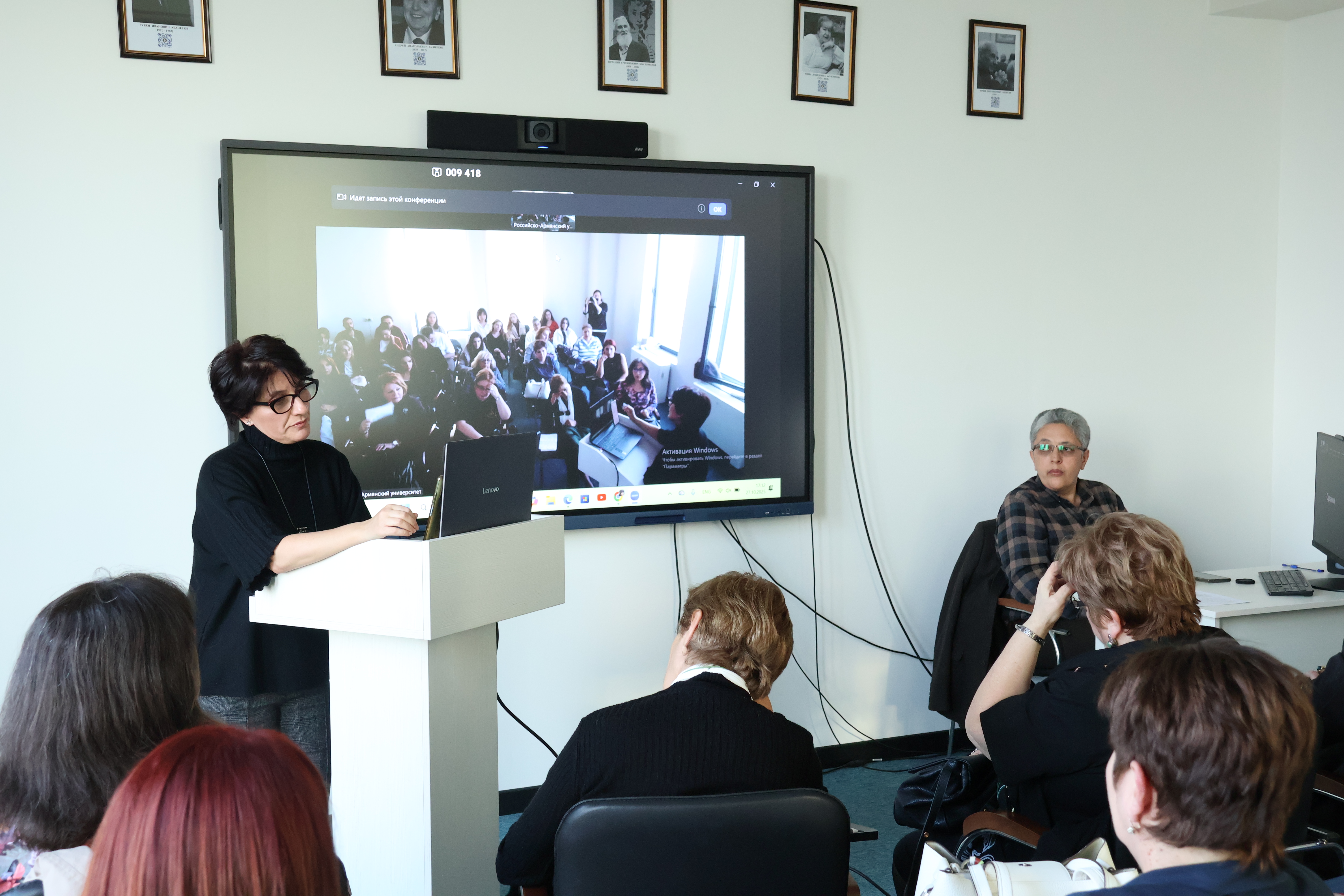 Петросян Лиана Вячеславовна, к.ф.н., доцент, доцент кафедры русского языка и профессиональной коммуникации. Она выступила с 2 лекциями на тему «Искусственный интеллект как инструмент современного учителя/преподавателя русского языка». Петросян Л.В. ознакомила педагогов с инновационными инструментами, которые позволяют повысить вовлеченность студентов и оптимизировать работу преподавателя. Основное внимание было уделено практическому применению двух передовых образовательных приложений – Brisk и Parlay. Лектор наглядно продемонстрировала, как с помощью Brisk можно быстро создавать и адаптировать учебные материалы, а также предоставлять персонализированную обратную связь, в то время как платформа Parlay служит эффективным инструментом для организации структурированных онлайн-дискуссий и развития у студентов навыков критического мышления.