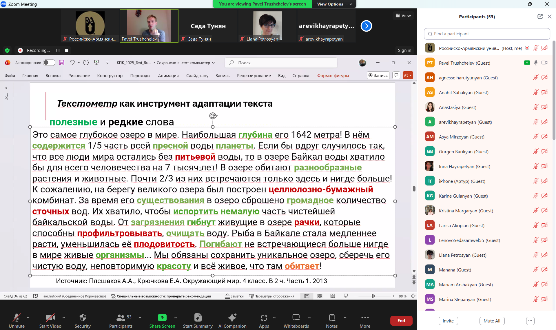 С 27 по 31 октября 2025 года кафедра русского языка и профессиональной коммуникации Института филологии и межкультурной коммуникации и Центр русистики Российско-Армянского (Славянского) университета организовали и провели курс повышения квалификации «Инновационные и информационные технологии в методике преподавания русского языка – 2025» для учителей и преподавателей русского языка Республики Армения и зарубежья.